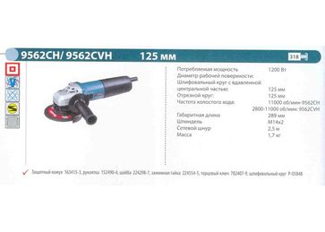 - Шлифмашина угловая MAKITA 9562CVH (1200Вт, 125мм, 2800-11000об мин, 1.7кг) по выгодной цене 5 200 р. руб.;