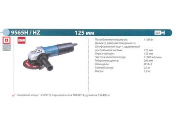 Шлифмашина угловая MAKITA 9565HZ (1100Вт, 125мм, 11000об мин, 1.8кг)