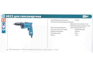 - Шуруповёрт сетевой MAKITA 6822 (570Вт, 0-4000об мин, 1.3кг) по выгодной цене 4 850 р. руб.;