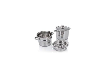 Простая в эксплуатации пароварка из высококачественной нержавеющей стали. Приготовление пищи на пару уменьшает потерю витаминов, минералов и сохраняет аромат блюда, а так же позволяет готовить без применения жиров и масел, что особенно важно для диетического меню. Основные характеристики Тип Пароварка Цвет Нержавеющая сталь Материал Нержавеющая сталь Материал дна Нержавеющая сталь Материал ручек Нержавеющая сталь Диаметр, см 20 Объем, л 5 Дополнительные характеристики Антипригарное покрытие Нет Крышка Есть Отверстие для выпуска пара Есть Совместимость Универсальная Дополнительно Изготовлено из высококачественной нержавеющей стали Трехслойное капсульное дно обеспечивает хорошую теплопроводностьПрозрачная крышка из жаропрочного стеклаВозможно использование как обычной кастрюлейНаличие рисоварки из нержавеющей стали (2 л) Принимаем WebMoney, QIWI и Yandex-деньги без %