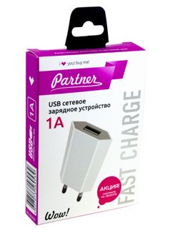 - Зарядное устройство PARTNER USB 1A по выгодной цене 390 р. руб.;