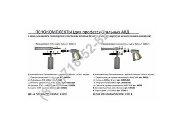Пенокомплект позволяет наносить активную пену на отмываемую поверхность. Поскольку KARCHER выпускает как профессиональные (HD), так и бытовые (K) мойки высокого давления, то необходимо отметить это при заказе. На фото представлены пенокомплекты для профессиональных моек высокого давления. Интересует комплексное оснащение автомоек? Обращайтесь к специалистам ООО "Чистоград". None