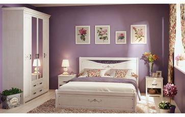 Модульная спальня Афродита — фаворит среди интерьеров у мечтательных и романтичных натур, этот стиль отлично подойдет как для квартиры, так и для загородного дома. Он создает очень нежный и даже слегка воздушный вид вашей комнаты, где в свойственной французам элегантной манере объединены красота и комфорт. Кровать оборудована ортопедическим основанием с актуальным подъемным механизмом, благодаря которому вы можете экономить площадь. Спинка кровати декорирована легкой росписью и кованой вставкой. Трех- и четырех дверные шкафы дополнительно комплектуются карнизом. Модули, входящие в комплект: