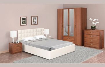 Комод 2.06 (806х447х860); Шкаф 4-х дверный 8.041 с зеркалом (1845х540х2380); Кровать Люкс Классика 140 (1650х2200х1000); Комод 1.021 (404х385х475) — 2 шт.