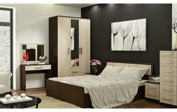 Модульная спальня Фиеста — современная функциональная модульная мебель эконом класса. Модули изготовлены из высококачественной ЛДСП в контрастном сочетании цветов. Предусмотрены два цветовых решения: Венге / Лоредо и Ясень шимо темный / ясень шимо светлый. Серия включает вместительные шкафы, комоды и пенал для хранения белья и одежды. Для организации спального места предлагаются кровати. Модули, входящие в комплект: