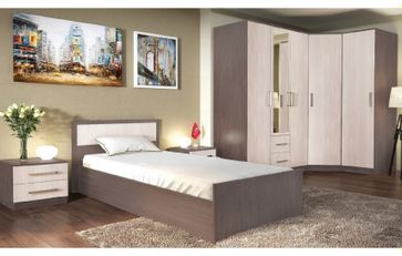 Кровать Фиеста LIGHT 90 (1050х2032х750); Шкаф 3-х дверный (1200х610х2216); Тумба прикроватная 2 шт. (400х410х450); Пенал (400х610х2216); Шкаф угловой (876х876х2216).