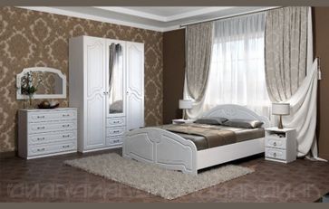 Кровать Кэт-6 Классика, 160, под ортопедическое основание (1670х2030х900); Тумба прикроватная (382х378х522) — 2 шт.; Шкаф 3-х створчатый (1506х576х2200); Комод (946х430х830); Зеркало (980х600).