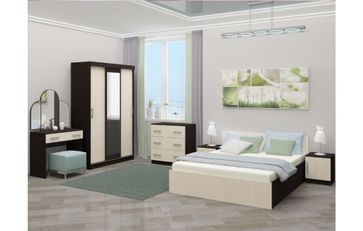 Модульная спальня Бася — это стильный дизайн, уют и порядок в вашей квартире. В модульную систему входят самые необходимые предметы мебели, которые обеспечат максимальное удобство. Вместительный шкаф имеет боковые секции с полками и центральную секцию со штангой. Мебель выполнена из ЛДСП высокого качества. Модули входящие в комплект: •Кровать Бася 160 (1635х2037х700); •Тумбы прикроватные (350х370х416) 2 шт.; •Шкаф-купе (1300х520х2016); •Комод 3 ящика (800х430х816); •Трельяж (800х446х1625).