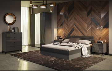 Модульная спальня Оливия — серия мебели в стиле Лофт. Тумбы и комоды установлены на черные металлические опоры. Материал корпуса ЛДСП. Материал фасада МДФ с рифленой фактурой. В составе комплекта: •кровать с ортопедическим основанием и подъемным механизмом (1674х2053х800);