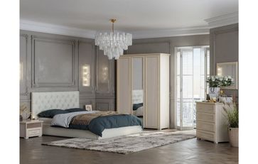 Модульная спальня Парма — великолепный комплект для создания классического интерьера. Модули выполнены из ЛДСП (корпус) и МДФ (фасад) в нежном декоре Сандал светлый. Фасады декорированы золотой патиной. Изящные ручки косичкой дополняют изысканный образ. В составе комплекта: •кровать Парма мягкая с ПМ 160 (1800х2140х1125); .тумба прикроватная (552х434х360) 2 шт.; •зеркало для спальни (800х22х800); •комод 4 ящика (852х466х848); •шкаф 3-створчатый (1508х552х2064) штанга, 7 полок. Матрас приобретается дополнительно. None Страна производства: Россия Есть доставка.