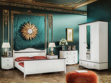 Модульная спальня Вояж — выполнена в стиле Прованс. Мебель выполнена в белом матовом декоре с отделкой в цвете Венге. Кровать 160200 имеет ортопедическое основание на ножках.