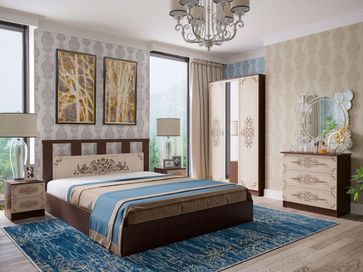 Модульная спальня Жасмин ЛДСП — спальня с фасадами из глубоких контрастных цветов. Кровать с оригинально оформленным изголовьем станет настоящей изюминкой комнаты. Мебель изготовлена из ЛДСП. Кровати оборудованы настилом ДСП. В комплектации на фото: •Комод Жасмин (840х440х816); •Шкаф 3-х створчатый Жасмин (1350х540х2216); •Тумба Жасмин (350х380х416) 2 шт.; •Кровать Жасмин 160 (1800х2037х870).Матрас приобретается дополнительно. None Страна производства: Россия Есть доставка.