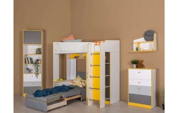 Детская Альфа 2 белый/серый/солнечный свет предназначена для детской комнаты с двумя подростками.