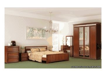 Модульный спальный гарнитур Ластория Каркас – ЛДСП толщина 16 и 22 мм (кромка ПВХ). Цвет «Мария Луиза» Фасад - ЛДСП, декоративная накладка МДФ, цвет «Мария Луиза», декоративные зеркальные вставки. Кровать снабжена деревянной тахтой с латами Возможно измен