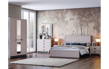 Модульная спальня Прованс RAUS — ультрамодная модульная коллекция мебели во французском стиле Прованс. Яркий представитель современных мебельных направлений: роскошный, изысканный и утонченный. Отличается необычным цветом фасадов (в пастельных тонах), особым дизайном, который не спутаешь ни с каким другим, и использованием при производстве этой линейки качественной фурнитуры, в том числе дверных петель с доводчиками. Все выдвижные системы оснащены направляющими полного выдвижения. В качестве дополнительной опции в шкафах с витринами предусмотрена локальная подсветка, которую можно приобрести отдельно. Предусмотрены кровати 2 размеров с основаниями настил ДСП и ортопедическим. Материал корпуса ЛДСП, фасада МДФ составной. В составе композиции: •Комод (850х430х854) 4 ящика, •Зеркало (800х20х820), •Шкаф 3-х створчатый (1500х518х2226) отделение для платья за 2 распашными дверьми со штангой и 2 полками, отделение для белья с 4 полками, зеркало, •Кровать 160 с ортопедическим основанием (1645х2038х1110), •тумба прикроватная (540х334х488) 2 ящика — 2 шт. Матрас приобретается дополнительно. None Страна производства: Россия Есть доставка.