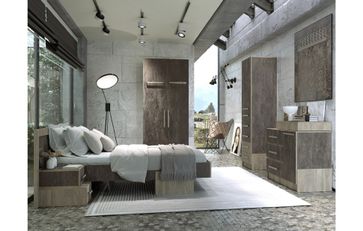 Модульная спальня Карина-11 — элегантная простота линий и оригинальный дизайн. Практически все модули выглядят необычно, а сам комплект органично впишется и в интерьер модерн или лофт стиля. Материал ЛДСП. Декор Ательер темный/Дуб эндгрейн. В составе композиции: •кровать Карина-11 140 (2064х2048х850) основание настилы ДСП, •тумба прикроватная (360х520х400) — 2 шт., •комод-1 3 ящика/секция с полкой/ящик для бижутерии (1132х520х920); •шкаф №1 штанга/3 полки/антресольная полка (932х520х2100); •пенал 5 ящиков/2 полки (632х420х2100). Матрас приобретается дополнительно. None Страна производства: Россия Есть доставка.