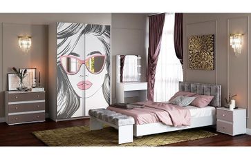 Коллекция мебели Мемори - идеальный вариант обустройства спальной комнаты для девочки. Сочетание спокойных пастельных тонов (серого, бежевого, розового) с белым делают мебель комфортной для восприятия. Кроме того, нейтральные оттенки позволят разместить данный комплект в любом по стилю интерьере. Разнообразие модулей из коллекции Мемори подарит Вам возможность максимально функционально и практично организовать хранение вещей Вашего ребенка. В высоких шкафах найдется место для верхней и деликатной одежды, широкий комод вместит в себя белье и детские игрушки. На полках стеллажа Вы сможете разместить предметы декора и книги. Кровать с прикроватной тумбой и пуфом обеспечат много часов сна спокойного отдыха и сна. Туалетный стол с подсветкой станет любимым уголком Вашей принцессы. Ярким акцентом спальни выступит шкаф с фотопечатью и зеркальными вставками, который не оставит равнодушным ни одну настоящую девочку! None Страна производства: Россия Есть доставка.
