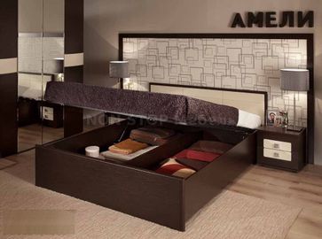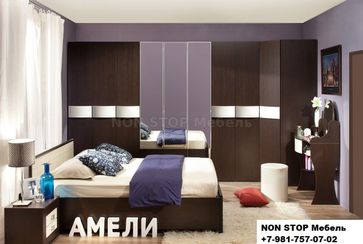 Спальня АМЕЛИ Композиция 5 Размер - смотрите поэлементно Цвет венге, дуб отбеленный Возможно изменение композиции и приобретение по отдельным предметам Матрас в стоимость не входит Матрас вы можете приобрести отдельно у нас на выбор: беспружинные матрасы, матрасы с зависимыми пружинами (пружинный блок боннель) или независимыми пружинами, средней жесткости и с усилением, с различным наполнением (латекс, кокос, зима лето и другие варианты и их сочетания) УВы можете составить композицию на ваше усмотрение, по размерам и наполнению из элементов представленных на изображении №2 - стоимость элементов уточняйте по телефону, через форму обратной связи или почту nonstopmebel@yandex.ru Мебель в декоре Венге наиболее выигрышно смотрится с контрастными вставками просто и в то же время изысканно и элегантно. Темные фасады шкафов с ручками из винилкожи оттенка топленого молока отлично сочетаются, поэтому компоновка из таких шкафов, выставленная во всю стену, стильная альтернатива простым шкафам-купе. Если нужно задействовать угол спальни, шкафную группу можно дополнить модулем 13 Шкаф угловой со стационарной штангой и встроенной автоматической подсветкой. В коллекции АМЕЛИ большой выбор туалетных столиков: 6, 14 и 15 Стол туалетный, можно выбрать любой из них на Ваш вкус. Столики 14 и 15 с практичным поворотным зеркалом овальной формы. Зеркало можно наклонять, тем самым корректировать направление света при нанесении макияжа. 14 Стол туалетный отличное решение для небольших спален. Ширина этого столика всего 800 мм! Под столешницей предусмотрена небольшая полочка для высоких флакончиков, что очень удобно и практично. Её можно установить как справа, так и слева, по Вашему желанию. 15 Стол туалетный просторный и вместительный. Два глубоких ящика оснащены телескопическими шариковыми направляющими полного выдвижения, которые обеспечивают плавность и мягкость хода при полном выдвижении ящиков. Две полочки округлой формы для высоких флакончиков под столешницей Теперь не придется ло