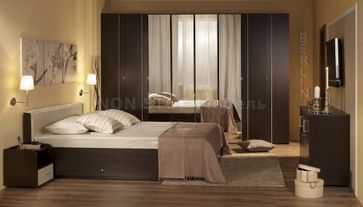 Спальня Берлин (BERLIN) - композиция 1 Цвет венге, дуб сонома Размер - смотрите поэлементно Возможно изменение композиции и приобретение по отдельным предметам Матрас в стоимость не входит Матрас вы можете приобрести отдельно у нас на выбор: беспружинные матрасы, матрасы с зависимыми пружинами (пружинный блок боннель) или независимыми пружинами, средней жесткости и с усилением, с различным наполнением (латекс, кокос, зима лето и другие варианты и их сочетания) Вы можете составить композицию на ваше усмотрение, по размерам и наполнению из элементов представленных на изображении №2 - стоимость элементов уточняйте по телефону, через форму обратной связи или почту nonstopmebel@yandex.ru Новая спальня BERLIN от Глазовской мебельной фабрики это классика и стиль в сочетании с комфортом и удобством. Кровать с легким изгибом мягкого кожаного изголовья элегантна и удобна. Оригинальный рельеф изголовья в виде прямоугольников подчеркивает простоту стиля модерн с его традиционной четкостью линий. Все кровати коллекции могут комплектоваться как обычным ортопедическим основанием с гибкими ламелями, так и основанием с подъемным механизмом, по Вашему желанию. Кровать с подъемным механизмом отличное дополнительное место для хранения в небольших спальнях. Максимально допустимый вес матраса 70 кг. Контрастная белая кромка 2 мм для декорирования модулей изюминка спальни BERLIN. Вместительный четырёхдверный BERLIN 34 Шкаф для одежды и белья с зеркалами во весь рост уже зарекомендовал себя как отличный, продуманный по внутреннему наполнению модуль. А возможность перевешивать фасады позволит создать современную компоновку из нескольких шкафов во всю стену. 36 Тумбу МЦН можно использовать и как вместительный комод, и в качестве тумбы ТВ, и даже как альтернативу туалетному столику в небольших квартирах, навесив над ней Зеркало навесное 2 из коллекции HYPER. Телескопические шариковые направляющие ящиков тумбы обеспечивают минимальный люфт и плавность хода. None
