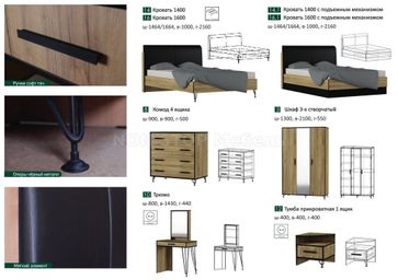 Спальня Лофт (модульная) Корпус: дуб крафт золотой Фасад: мягкий элемент: экокожа люкса блэк Размер - смотрите поэлементно Спальное место 1600х2000 (возможен также вариант со спальным местом 1400х2000) Комплектацию можно менять и приобретать элементы по отдельности в любом количестве и сочетании Вы можете составить композицию на ваше усмотрение, по размерам и наполнению из элементов представленных на изображении №2-4, стоимость элементов уточняйте по телефону, через форму обратной связи или почту nonstopmebel@yandex.ru None