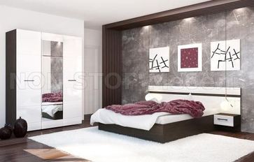 Спальня Ненси (модульная) Цвет Венге / Белый глянец, Ясень шимо светлый / Какао глянец Размер - смотрите поэлементно Возможно изменение композиции и приобретение по отдельным предметам Указана цена за вариант представленный на изображении (без учета матраса - приобретается дополнительно), который вы можете изменить на ваше усмотрение, составив необходимую вам композицию по размерам и наполнению из элементов представленных на изображении №№2 - стоимость элементов уточняйте по телефону, через форму обратной связи или почту nonstopmebel@yandex.ru Спальня Ненси - современная, стильная модульная спальня, выполненная со светлыми глянцевыми фасадами. Кровать можно дополнить разнообразными дополнительными элементами. None