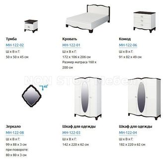 Спальня Тиффани Цвет венге / белый полуглянец Размер - смотрите поэлементно Возможно изменение композиции и приобретение по отдельным предметам Матрас в стоимость не входит Матрас вы можете приобрести отдельно у нас на выбор: беспружинные матрасы, матрасы с зависимыми пружинами (пружинный блок боннель) или независимыми пружинами, средней жесткости и с усилением, с различным наполнением (латекс, кокос, зима лето и другие варианты и их сочетания) Указана цена за вариант представленный на изображении, который вы можете изменить на ваше усмотрение, составив необходимую вам композицию по размерам и наполнению из элементов представленных на изображении №№2 - стоимость элементов уточняйте по телефону, через форму обратной связи или почту nonstopmebel@yandex.ru Бесшумность и комфорт Плавное и бесшумное закрывание ящиков обеспечивают надёжные немецкие направляющие с доводчиком. Спинка кровати выполнена из ЭКОкожи износостойкого дышащего материала, имитирующего натуральную кожу. ЭКОкожа приятная и мягкая на ощупь, имеет экологически чистый состав. None