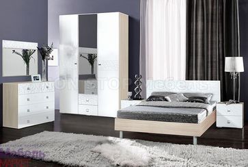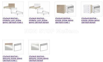 Спальня Винтаж 1 (модульная) Цвет Ясень шимо светлый / Кофе с молоком глянец, Ясень шимо светлый / Белый глянец Размер - смотрите поэлементно Возможно изменение композиции и приобретение по отдельным предметам Указана цена за вариант представленный на изображении (без учета матраса - приобретается дополнительно), который вы можете изменить на ваше усмотрение, составив необходимую вам композицию по размерам и наполнению из элементов представленных на изображении №№2 - стоимость элементов уточняйте по телефону, через форму обратной связи или почту nonstopmebel@yandex.ru None