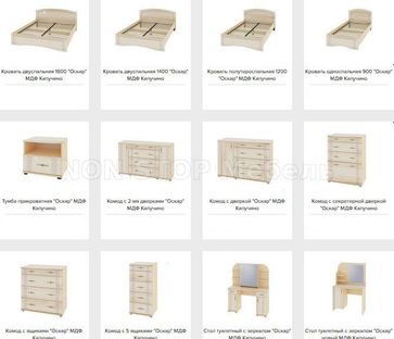 - Спальный гарнитур Оскар МДФ К2 (модульный) по выгодной цене 53 770 р. руб.;