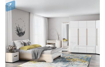 Модельная спальня Палермо-3 — серия в стиле модерн, изготовленная из экологичных материалов (корпуса модулей 16 мм в декоре Ясень шимо светлый, фасады — МДФ Белый глянец или Ясень графит матовый). Плавные линии конструкций модулей, созданные с помощью фасадов оригинальной формы, создают уютный и стильный интерьер. В серии представлен широкий ассортимент шкафов прямых и угловых, различной дверности и конструкции, комод, тумбы, зеркала и кровати в 3 размерных вариантах. Дополнительно возможно комплектовать шкафы зеркалом, навешиваемым на внутреннюю сторону створки. В комплектацию, как на фото, включены: •Кровать Палермо-3 160 с подъемным механизмом (1660х2060х900); •тумба прикроватная (500х349х424) — 2 шт.; •стол туалетный (1000х445х750); •пуф (500х355х454); •тумба под зеркало (646х414х245); •зеркало ростовое (646х34х1833); •шкаф угловой 45 град (883х883х2078); •шкаф 3-хстворчатый распашной (1602х509х2078). Матрас приобретается дополнительно. None Есть доставка.