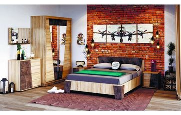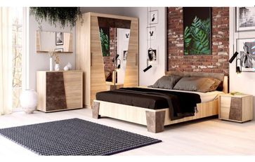 Модульная спальня Санремо — серия в стиле Лофт, выполненная в сочетании естественного древесного декора Дуб Сонома светлый и имитирующего камень Ателье темное. Углубляют эффект необычности косые двухуровневые фасады модулей. Мебель изготовлена из ЛДСП, кромки обработаны ПВХ. Ящики тумб и комода укомплектованы роликовыми направляющими 350 и 400 мм и открываются методом захвата рукой. Шкаф-купе комплектуется косыми зеркальными полотнами, направляющая дверей ТА 1-03 (2 полозная). Шкаф оборудован штангой, полками и выдвижными ящиками. Кровать комплектуется ортопедическим основанием. В составе композиции: •кровать Санремо (1670х2048х850); •шкаф-купе (1500х600х2195); •тумба прикроватная левая (450х415х475); •тумба прикроватная правая (450х415х475); •комод (900х465х880); •зеркало (900х122х500). Матрас приобретается дополнительно. Обратите внимание, сборка модулей не универсальна. None Есть доставка.