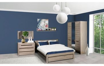 кровать Афина А3 160 (1814х2080х870); ящик бельевой А10 (1492х616х220); А2 Комод (1026х438х754); А9 Зеркало навесное (1026х16х550); А11 Шкаф для одежды (1468х582х2200).