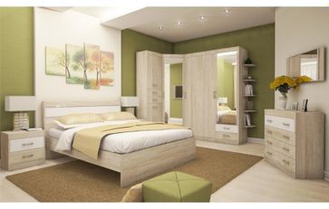 Кровать без ортопеда 1600х2000 Н-19 Тумба прикроватная Н-15 — 2 шт. Комод Н-16 Зеркало Н-18 Шкаф МЦН Н-21 Шкаф угловой с зеркалом Н-7 Шкаф для одежды Н-10з Стеллаж Н-14.