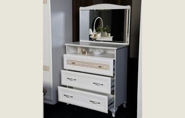 Белая мебель для спальни Клауди — покорит сердца тех, кто любит изысканную классику. Ажурная вставка с золотом придает мебели роскошный вид. Коллекция Клауди позволяет создать гармоничную обстановку, которая способствует полноценному отдыху и комфортному времяпровождению.
