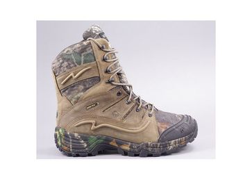 модель: зимние охотничьи ботинки артикул: 9663 CANYON-HIGH Материалы: верх - натуральная кожа, нейлон (кордура) внутри - мембрана GORE-TEX, утеплитель Thinsulate Ultra 600 gram подошва - полиуретан, EVA (ЭВА) размеры: 41, 42, 43, 44, 45 Очень удобные ботинки для передвижения по пересеченной местности, средней высоты (8 дюймов). Шнуровка позволяет хорошо зафиксировать ногу. Естественный тёмный камуфляж, скомбинированный с кожей бежевого цвета, хорошо подойдет к различным видам камуфлированной одежды. Упругая морозостойкая подошва.