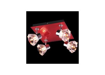 Коллекция: Clematis Тип светильника: Споты Стиль: Модерн Длина: 320 мм Ширина: 320 мм Высота: 130 мм Цвет плафона: прозрачный Материал плафонов: стекло Тип поверхности плафонов: глянцевый Цвет арматуры: хром, красный Материал арматуры: металл Тип поверхности арматуры: глянцевый Цоколь: G9 Тип лампы: галогеновая лампа типа G9 Количество ламп: 4 Мощность лампы W: 40 W Напряжение: 230 V Возможность подключения диммера: возможно Степень пылевлагозащиты: IP20