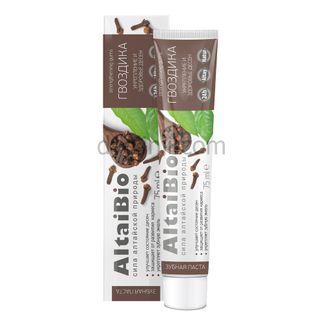 - AltaiBio Зубная паста для укрепления и здоровья десен Гвоздика, 75 мл по выгодной цене 114 р. руб.;