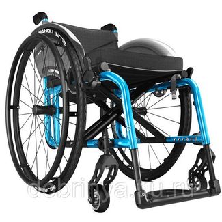 кресло-коляска комплектуется под заказ индивидуально под конкретного пользователя; рама изготовлена из алюминия, имеет складную, модульную конструкцию с двойной крестовиной; снабжена специальным адаптером приводного колеса; сиденье и спинка выполнены из высокопрочного нейлона с люмбальным вырезом; задние колеса ― быстросъемные, с пневматическими шинами; передние ― цельнолитые; подножка монолитная с единой платформой для ног; регулировка угла наклона сиденья и развала колес; ободья ― облегченные алюминиевые (полые); оснащена стояночными тормозами, эргономичными ручками для толкания, карбоновыми грязезащитными боковинами.
