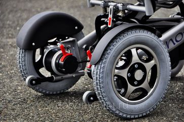 задние колёса - с бесщёточными электромоторами обладают независимым конструктивом "мотор-колесо" и экономичным энергопотреблением;