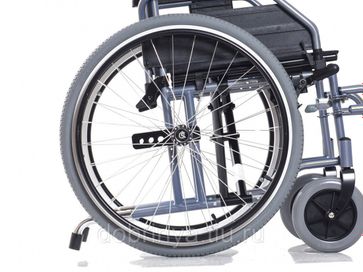 Оснащена ручками для сопровождающего лица Спинка съемная Подлокотники откидные, регулируемые по высоте Высота спинки нерегулируемая Высота сиденья регулируется спереди и сзади за счет изменения положения колес Глубина сиденья нерегулируемая Подножки съемные, откидные плавно регулируются по длине голени Передние колеса регулируются по вертикали в 2 положениях Шины передних колес цельнолитые Задние колеса регулируются по вертикали и горизонтали Шины задних колес пневматические, либо цельнолитые