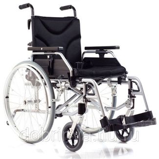 разборная конструкция позволяет приспособить кресло-коляску как для самостоятельного передвижения, так и для управления сопровождающим человеком (обслуживающим персоналом медицинского учреждения, родственниками); несущая конструкция смонтирована из алюминиевых труб, покрытых порошковым напылением, может складываться вдоль вертикальной оси; все детали быстросъемные и сбалансированные относительно друг друга; задние колеса оснащены пневматическими шинами, что позволит пользоваться креслом-коляской и в помещении, и на улице благодаря улучшенной амортизации (имеют 6 положений по вертикали и 4 по горизонтали); передние колеса цельнолитые, что значительно смягчает и ускоряет ход всей конструкции (имеют 3 положения по вертикали); 2 антиопрокидывателя оснащены роликовыми упорами, имеют 3 регулировки длины, что также определяет их высоту над поверхностью земли; 2 опоры для стоп могут соединяться в одну сплошную, каждая отдельная пластиковая платформа имеет регулировку ширины (возможно 5 углов наклона); откидные подлокотники регулируются по высоте (8 уровней) и по горизонтали (4 уровня); регулируемая спинка имеет 5 положений по горизонтали и 4 по вертикали, позволяет принять наиболее комфортное положение; сиденье имеет 5 регулировок глубины и 3 положения высоты; подушки сидения и спинки съемные, легко очищаются от загрязнений; ручки для сопровождающего регулируются по высоте; удобные стояночные тормоза и механизм регулирования движения одной рукой; дополнительное оснащение: ремни-упоры для стоп, ремни для голени, система регулируемых опорных ремней спинки и сидения, вместительные карманы на спинке.