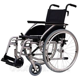 удобная инвалидная коляска, проста в использовании; рама - изготовлена из стали, складная; ручки для сопровождающего регулируются по высоте; подножки - откидные, регулируемые по высоте; опоры для стоп - выполнены из нейлона, снабжены регулировкой по углу наклона; подлокотники - откидные, съемные, оснащены боковыми грязезащитными щитками; задние колеса - полиуретановые, 24 дюйма, быстросъемные, регулируются во вертикали; передние колеса - полиуретановые, регулируются по вертикали; поставляется с различной шириной сиденья: 40 и 45 см (при заказе через сайт ширину сиденья необходимо выбрать в начале страницы).