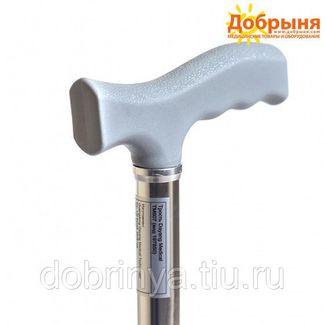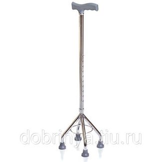 телескопическая с кнопочной фиксацией; хромированная, изготовлена из высокопрочного алюминиевого сплава; рукоятка имеет Т-образную форму, выполнена из прочного, не скользящего пластика; форма опоры - трапециевидная с 4-мя упорами; трость оснащена прочными нескользящими резиновыми насадками; обеспечивает надежную поддержку во время ходьбы; подходит для использования как на улице, так и в домашних условиях;