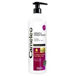 ---Описaние-Кератиновый кондиционер для волос Cameleo ВВ «Защита цвета» предназначен для бережного ухода за окрашенными и осветленными волосами. Не содержит соли, парабенов и искусственных красителей, имеет сбалансированный уровень кислотности pH 5,5. Инновационная формула экспресс кондиционера позволяет деликатно ухаживать за волосами, прекрасно очищает и помогает сохранить цвет окрашенных волос. Профессиональное качество обеспечивает активный кератин Keramimic 2.0, который восстанавливает повреждения изнутри и регенерирует поверхность волос, интенсивно увлажняя их. Кроме того, облегчает расчесывание волос, защищает волосы от УФ излучения и колебания температур. Ингредиент Softil придает волосам идеальную гладкость и глянцевый блеск. Масло марулы обладает сильным увлажняющим эффектом. Разглаживает структуру волос и эффективно защищает цвет окрашенных волос.-Общая информация--Средство-Кондиционер, бальзам и ополаскиватель-Характеристики--Тип средства-Кондиционер-Упаковка--Размер упаковки (ВхШхД), см-22 x 4 x 4 см, вес 0.5 кг-Информация о производителе--Производитель-Delia Cosmetics-Страна производства-Польша- None