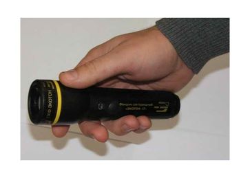Фонарик изготавливается в исполнении для значения температуры от минус 20o С до плюс 45o С. При использовании фонарик закрепляется на кисти руки с помощью шнурка с фиксатором. Переносится фонарик в кармане одежды или в сумочке.