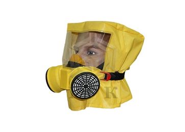 Шанс-Е предназначен для защиты органов дыхания, глаз и кожи лица людей от токсичных продуктов горения, в том числе от оксида углерода. Назначение изделия: УФМС «Шанс-Е предназначен для защиты органов дыхания, глаз и кожи лица людей от токсичных продуктов горения, в том числе от оксида углерода, при эвакуации из задымленных помещений во время пожара, а также от других опасных химических веществ (паров, газов и аэрозолей), в случае техногенных аварий и террористических актов. Условия применения и ограничения: Самоспасатель (полумаска) выпускается одного размера для взрослых и детей возраста от 12 лет. При этом, в надетом положении для людей с большим лицом нижняя часть полумаски должна находится (примыкать) в углублении между ртом и подбородком, для людей с малым лицом — под подбородком. Изделие не требует подбора и подгонки по размерам, и может использоваться людьми, в том числе имеющими объемную и длинную прическу, усы, бороду, очки. Состав изделия: УФМС «Шанс"-Е состоит из лицевой части, изготовленной из термостойкого поливинилхлорида желтого или оранжевого цвета в виде капюшона (закрывающего всю голову человека), прозрачной термостойкой поливинилхлоридной пленки с общим полем зрения не менее 70%, эластичного регулируемого оголовья, полумаски с двумя клапанами вдоха и одним клапаном выдоха и защитной накладкой клапана выдоха из огнестойкого термоэластопласта желтого цвета, двух фильтрующе-поглощающих патронов (пластиковые коробки диаметром 80 мм и высотой 40 мм) закрытые манжетами из огнестойкого термоэластопласта желтого цвета и герметизирующего шейного обтюратора. Комплектность изделия: •самоспасатель в металлизированной вакуумной упаковке — 1 шт., •матерчатая сумка с молнией — 1 шт. ; •паспорт изделия (в сумке для ношения). Срок гарантийного хранения: 5 лет (в штатной вакуумной упаковке). Масса изделия: не более 600 г (без упаковки). Сопротивление дыханию: на вдохе — 720 Па, на выдохе
