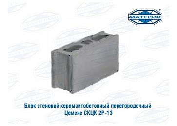 - Блок стеновой керамзитобетонный перегородочный Цемсис СКЦК 2Р-13 80х188х390мм по выгодной цене 28 р. руб.;