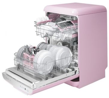 Отдельностоящая посудомоечная машина Стиль 50-х годов, розовая Фурнитура серебристая Закрытая панель управления из нержавеющей стали Ширина 60 см Необходима предоплата 50%. Есть доставка.