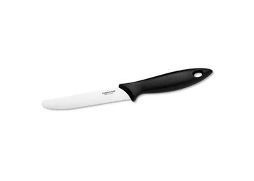 Нож Fiskars Avanti для томатов Нож разработан для ежедневного использования. Рукоять выполнена из черного ударостойкого полипропилена. Рельефная поверхность рукояти обеспечивает надежный захват. Специальный упор для пальцев делает работу с ножом безопасной. Лезвие выполнено из высококачественной японской стали. Твердость лезвия: 53 ед. по шкале С. Роквела. Нож можно мыть в посудомоечной машине. Специальное зазубренное лезвие делает нож удобным для нарезания помидоров и других мягких овощей и фруктов с тонкой кожурой.
