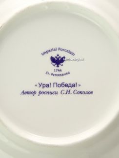 Закажите Тарелка декоративная форма "Гладкая", рисунок "Ура! Победа!", Императорский фарфоровый завод у компании Тульские самовары в Санкт-Петербургена портале Alloy: