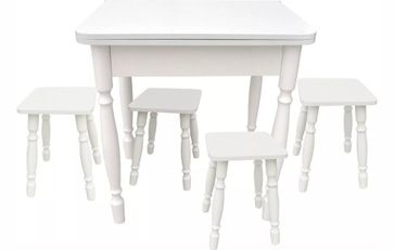 Комплект СМ ДСП 60х60 белый станет основой интерьера Вашей кухни или столовой комнаты. В составе набора раздвижной квадратный стол и четыре табурета, выполненные в едином стиле и цветовом решении. Мебель производится из качественных материалов - ламинированная ДСП и массив березы. В составе комплекта: Стол ломберный раскладной 60х60 ДСП белый Табурет ДСП белый 4 шт. None Есть доставка.